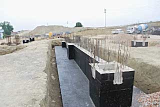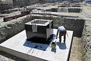 Resimde imalatı tamamlanmış bir tekil temel görülmektedir.Yer altı sularının ihtiva ettiği tuzların betona zarar vermesini engellemek amacı için dolgu öncesi kaplama yapılabilir.